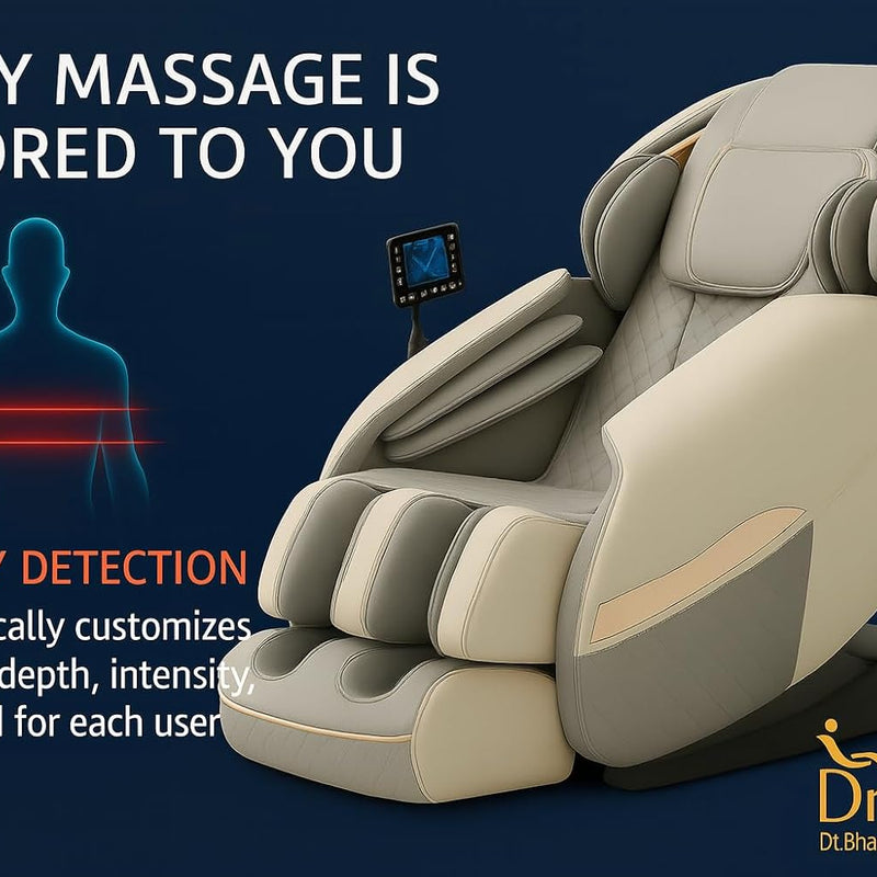 AI-Powered Body Scan: Dr BWC massage chair uses advanced sensors to detect your exact spine curvature & body dimensions. Personalized Roller Adjustment: Automatically modifies roller depth,speed & pressure for maximum comfort. Targeted Relief: Focuses on neck,shoulders,back,hips & thighs with precision. True 4D Experience: Combines kneading,tapping,shiatsu & rolling techniques for human-like massage therapy. Wellness at Home: Perfect for everyday pain relief & stress reduction.